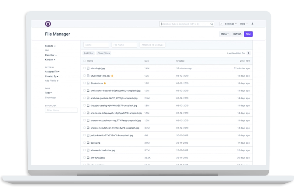 يمكنك إنشاء حلول تخطيط موارد المؤسسات مخصصة دون الحاجة إلى كتابة سطر برمجي واحد. أضف حقولًا مخصصة في النماذج، وقم بتخصيص سلوك النماذج تلقائيًا، وأخفِ الحقول بناءً على أدوار المستخدمين، وأنشئ تنسيقات طباعة مخصصة