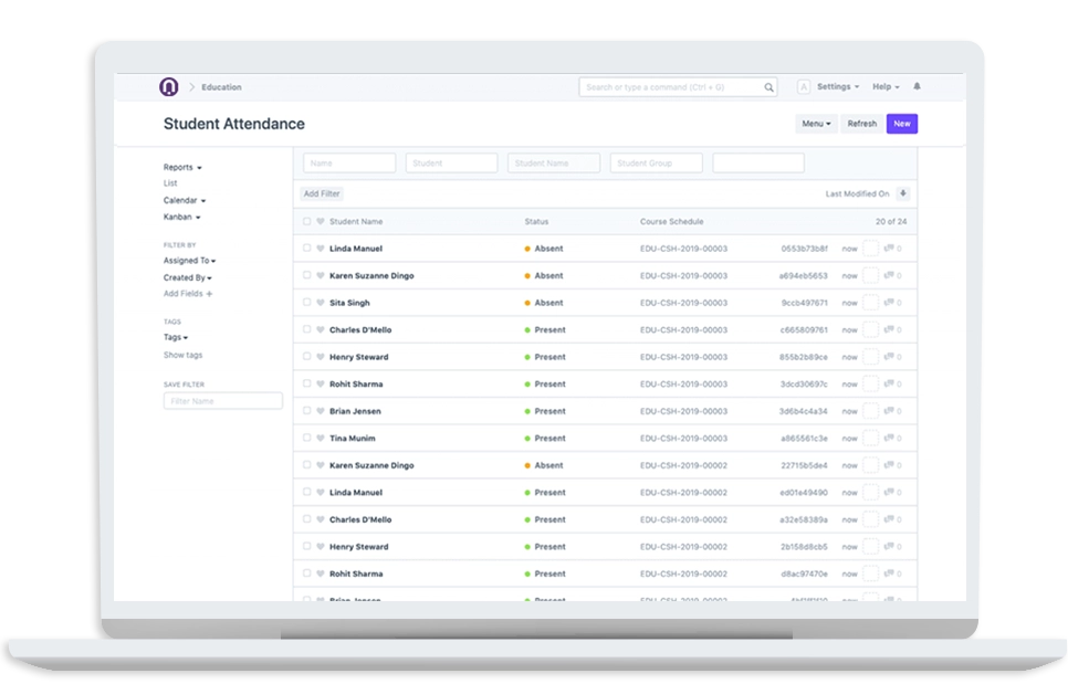 يتيح لك نظام الحضور تتبع وإدارة حضور كل طالب يوميًا وفي أي وقت. تم تصميم هذه الأداة لمساعدة المعلمين على تسجيل الحضور بسهولة باستخدام مربعات الاختيار، بينما يقوم النظام بإنشاء سجلات الحضور تلقائيًا